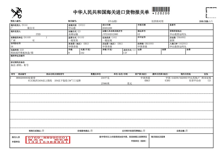 泰國(guó)松緊帶憑FormE產(chǎn)證中山港進(jìn)口清關(guān)