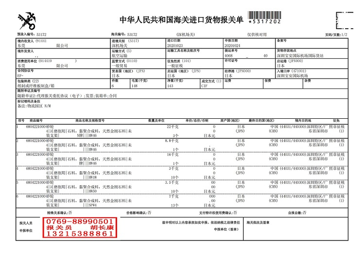 進(jìn)口日本砂輪深圳機(jī)場(chǎng)清關(guān)