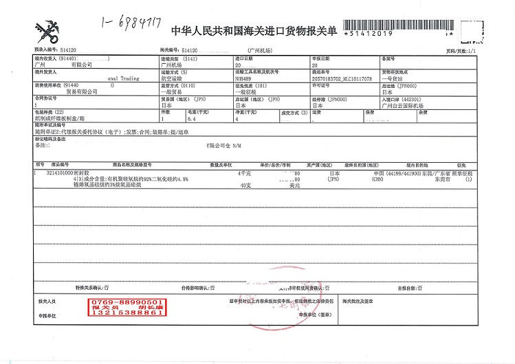日本密封膠廣州機(jī)場(chǎng)進(jìn)口報(bào)關(guān)