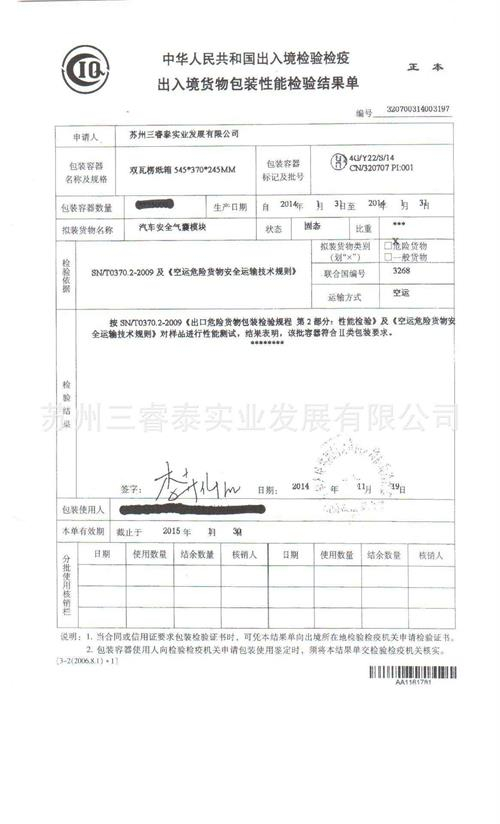 8類危險(xiǎn)品出口之氟硅酸海運(yùn)出口要求聯(lián)合國(guó)正確運(yùn)輸名稱(中文):氟硅酸聯(lián)合國(guó)正確運(yùn)輸名稱(英文):FLUOROSILICIC ACID主要危險(xiǎn)類別:8次要危險(xiǎn)類別:無EmS No.:F-A,S-B海洋污染物:無UN1778 CLASS88類危險(xiǎn)品是很常見出口貨物,船…
