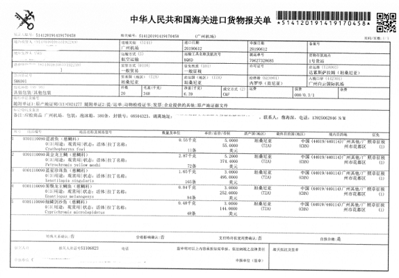 【聚海供應(yīng)鏈】代理坦桑尼亞慈鯛魚進(jìn)口報(bào)關(guān)品名:慈鯛魚產(chǎn)地:坦桑尼亞商品編碼: 0301110090 (觀賞用瀕危淡水魚 )商品描述:觀賞用其他淡水魚申報(bào)要素: 1:用途[觀賞用];2:狀態(tài)[活];3:拉丁名稱最惠國進(jìn)口關(guān)稅稅率:10% …